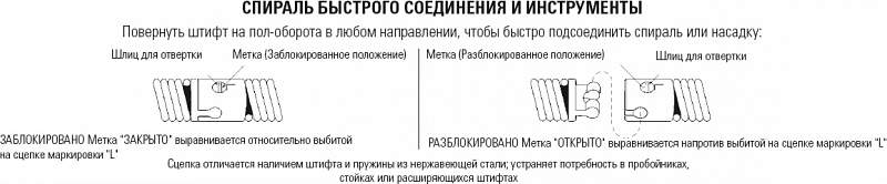 | Короткая спираль Ø 16 мм (5/8") × 114 мм (4 1/2") для барабана | Короткая спираль Ø 20 мм (3/4") × 150 мм (6") для барабана | Прочистная спираль C-24 Ø 16 мм (5/8") × 30,5 м | Прочистная спираль C-100 Ø 20 мм (3/4") × 30,5 м |