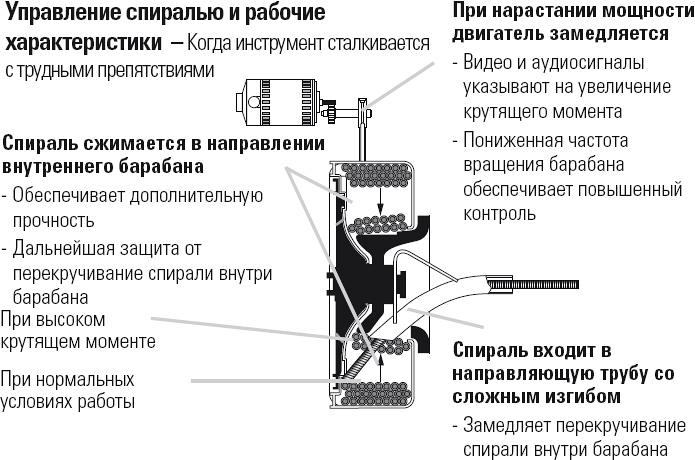 Управление прочистной спиралью и рабочие характеристики (когда инструмент сталкивается с трудными препятствиями):
